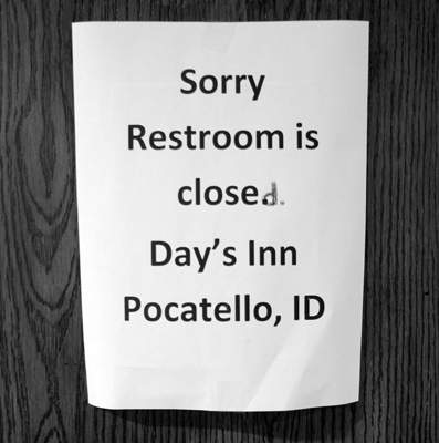 Once inside, I discovered that I couldn’t exit because the doorknob had gone missing. In its place was a sign that read: IF YOU WANT TO GET OUT, KNOCK LOUDLY. I did so, and eventually was able to escape.