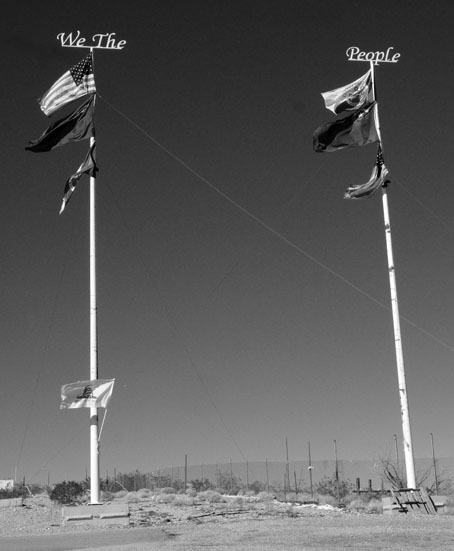 Bunkerville? It’s an unincorporated settlement just across the border in Nevada, which has even more public land than Utah. It’s somewhere between Mesquite and Riverside–a patriotic stronghold consisting of a single gated compound and two towering flagpoles erected by “We The People.” I once stopped to snap a picture but didn’t linger, least I be accosted by whoever might be scoping me out.